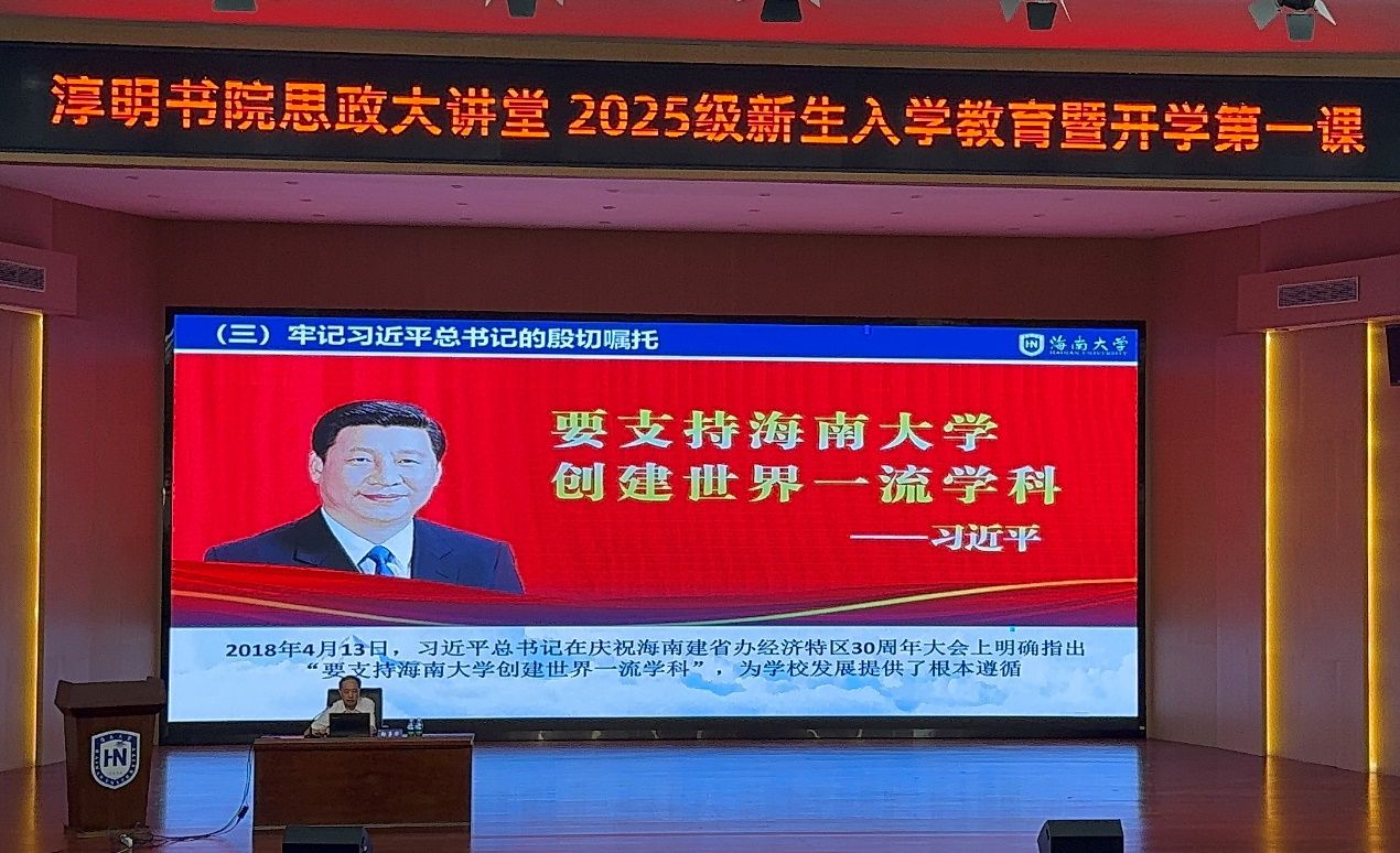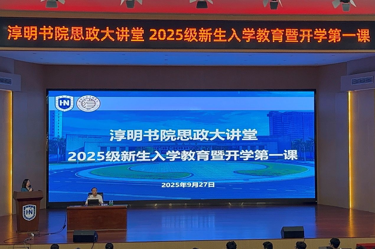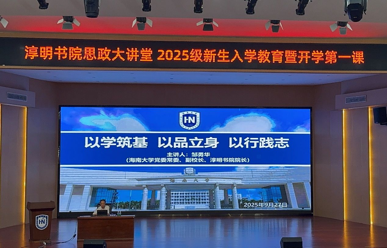 为帮助2025级新生快速适应大学生活,树立学习目标,9月27日下午,书院在学校田家炳二楼报告厅开展淳明书院思政大讲堂暨 2025级新生“开学第一课”。海南大学党委委员、副校长、淳明书院院长邹勇华聚焦“以学筑基,以品立身,以行践志”,为2025级新生讲授“开学第一课”,书院全体辅导员及300余名学生共同聆听。书院党委书记周郭军主持。