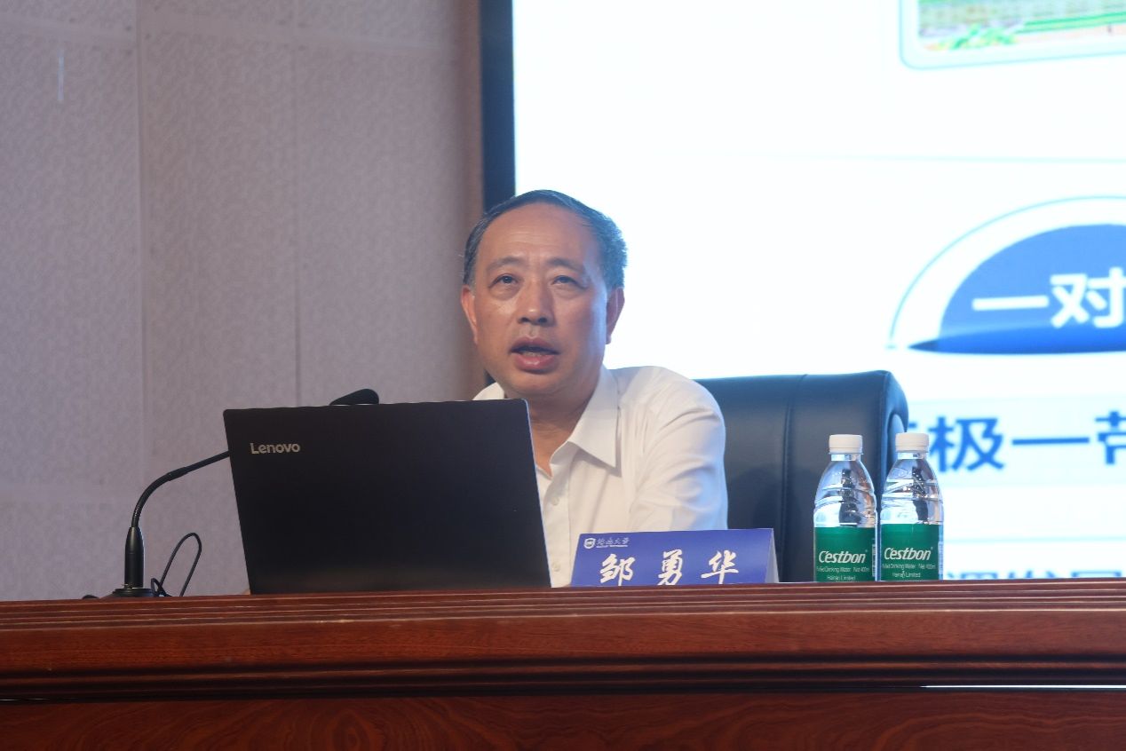 邹勇华副校长结合学校发展实际,向新生系统讲述了学校的发展历史、综合改革、校区建设规划和从海南大学走出的杰出校友,并展示了多年来学校取得的突出业绩和丰硕成果。他指出,学校近年来取得跨越式发展,离不开全体师生的共同努力,他勉励新生在大学期间要夯实学识基础、锤炼道德品格、积极投身实践,努力成长为对社会有用的人才。