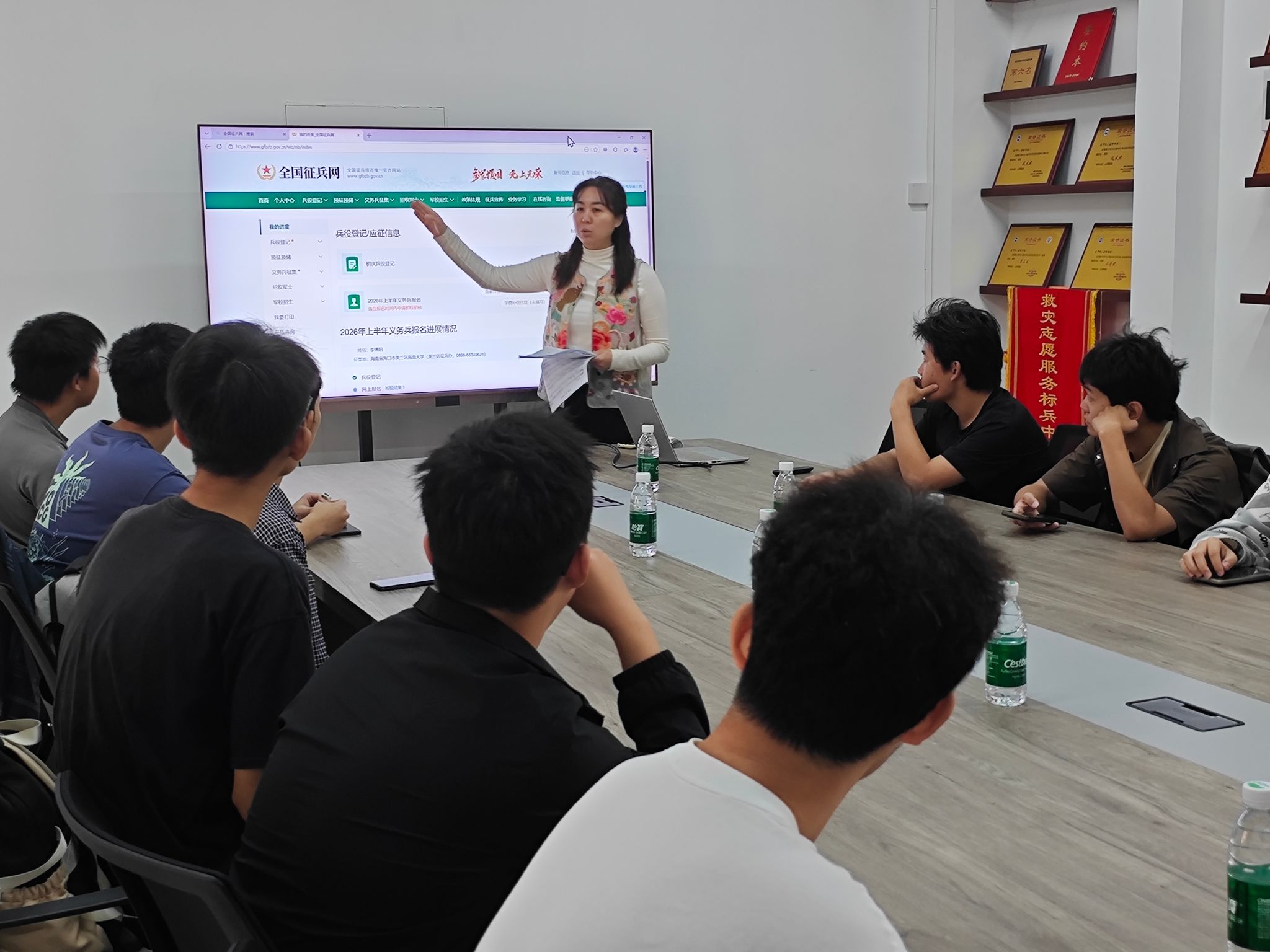 会上,郑小钰老师首先向心怀报国热情、有志参军入伍的同学们表示了肯定与欢迎。随后,她系统为同学讲解了2026年春季征兵的具体时间节点、网上报名操作流程、体检与政审的基本要求以及应征过程中的关键注意事项。