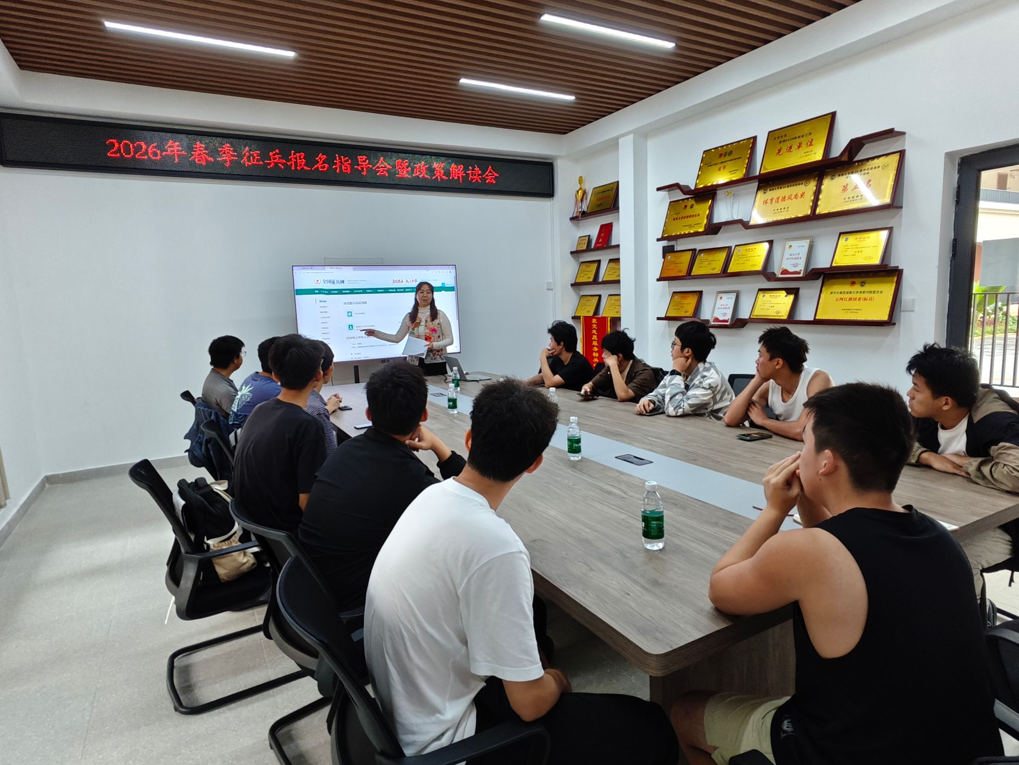 为积极响应国家号召,扎实做好2026年大学生征兵工作,帮助有志投身国防事业的同学全面了解政策、明确报名流程,2025年12月9日下午,淳明书院在木棉公寓C02栋138会议室举行2026年春季征兵报名指导会暨政策解读会。书院征兵工作辅导员郑小钰老师、书院国防教育班预报名同学及部分有志参军的学子参加了本次会议。