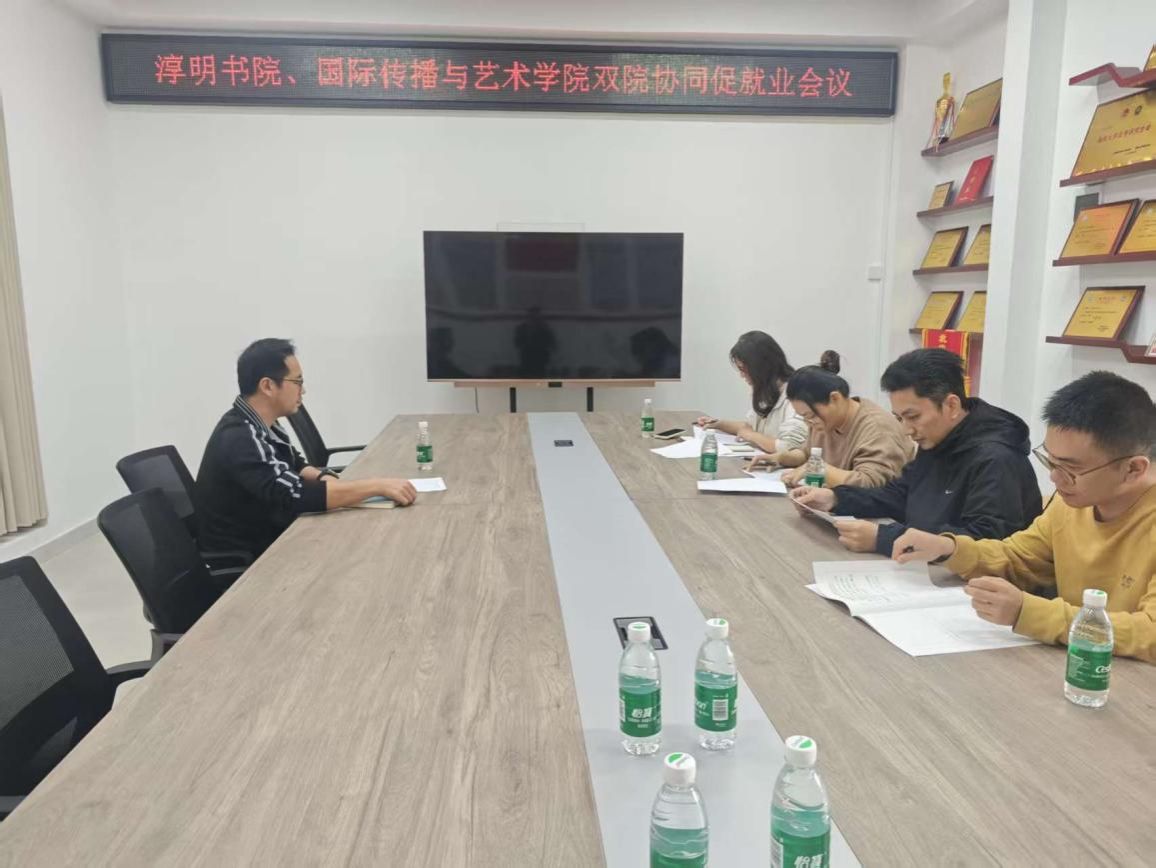为深入贯彻学校关于促进学生高质量充分就业的工作部署,加强学院与书院之间的协同联动,12月16日上午,淳明书院与国际传播与艺术学院在木棉公寓C02栋138会议室联合召开双院协同促就业专题会议。国际传播与艺术学院党委副书记陈鹏,淳明书院党委副书记武琼、副处级辅导员陈泽锐、就业辅导员郑小钰、辅导员王泽宇参加了会议。